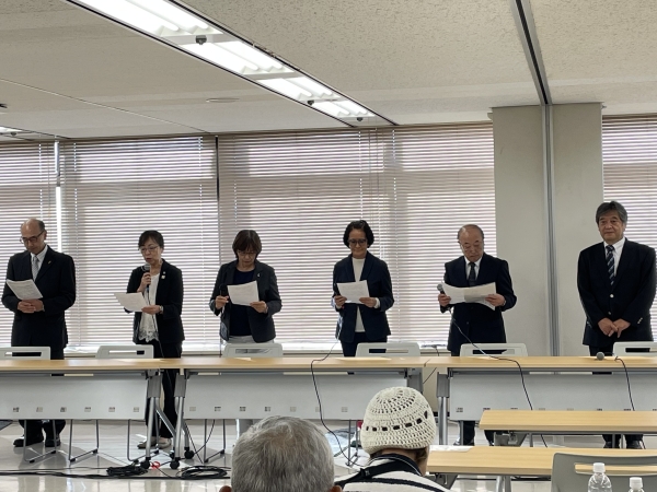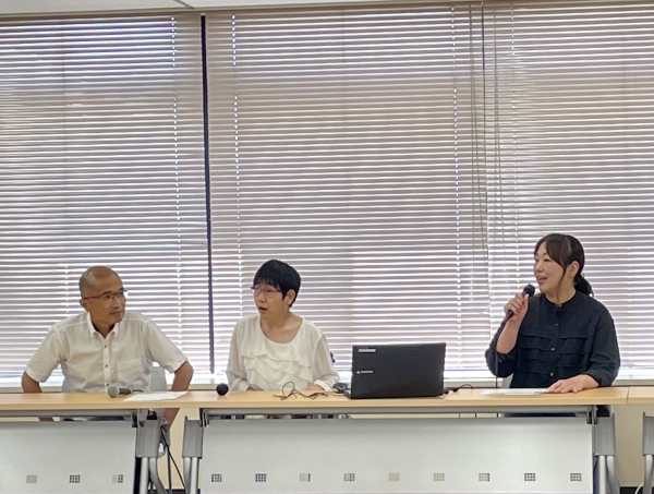 *支援協会からの発表(左から、久保様、村中友江さん、鈴木事務局長)